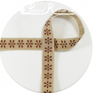 Ecru / Taupe / Light Brown 15mm ribbon with BROWN flower printed. 20m roll (PP15FLWR_BRW) |