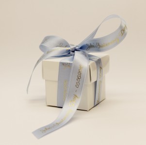 > 15mm Personalised Light Blue Christening ribbon