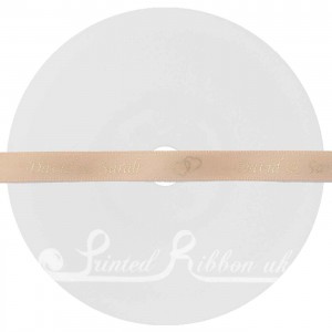A 25m roll (approx) of PEACH 10mm wide high quality double faced satin bespoke personalised ribbon.