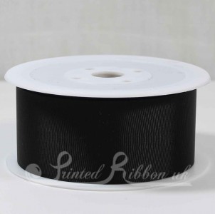 High quality, decorative double faced woven edge 38mm BLACK grosgrain ribbon (aka ribbed ribbon or if misspelt, grossgrain ribbon). Supplied on 20m roll. 100% polyester grosgrain ribbon.