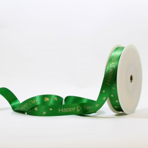 Our bespoke St Patrick's Day printed ribbon looks lovely tied round favour boxes, party boxes, jewellery boxes or organza bags to give that personal touch at the festive time of year. As the ribbon is double faced satin, the reverse side is the same quality as the printed side.