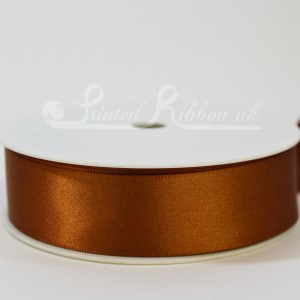 Beautiful 25mm (approx. 1 inch) wide Double faced Satin woven ribbon on a 25 metre roll/reel. Colour COPPER.