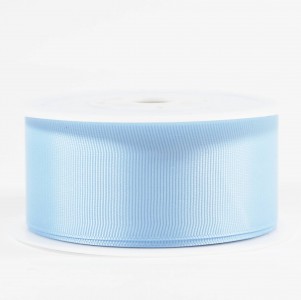 High quality, decorative double faced woven edge 38mm BABY BLUE grosgrain ribbon (aka ribbed ribbon or if misspelt, grossgrain ribbon). Supplied on 20m roll. 100% polyester grosgrain ribbon.