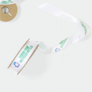 This ribbon is made from 100% recycled plastic bottles. The used plastic bottles are collected and thoroughly cleaned then broken down into smaller plastic elements. These plastic flakes are melted back into a liquid form then converted into filaments and combined together to create a 100% recycled ribbon yarn.