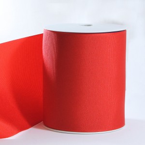 High quality, decorative double faced woven edge 100mm RED grosgrain ribbon (aka ribbed ribbon or if misspelt, grossgrain ribbon). Supplied on 20m roll. 100% polyester grosgrain ribbon.