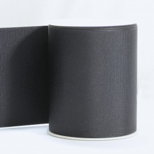 High quality, decorative double faced woven edge 100mm BLACK grosgrain ribbon (aka ribbed ribbon or if misspelt, grossgrain ribbon). Supplied on 20m roll. 100% polyester grosgrain ribbon.