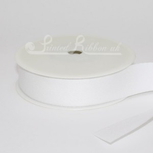 38mm wide, Bleached White herringbone style cotton ribbon supplied on the 25m roll.